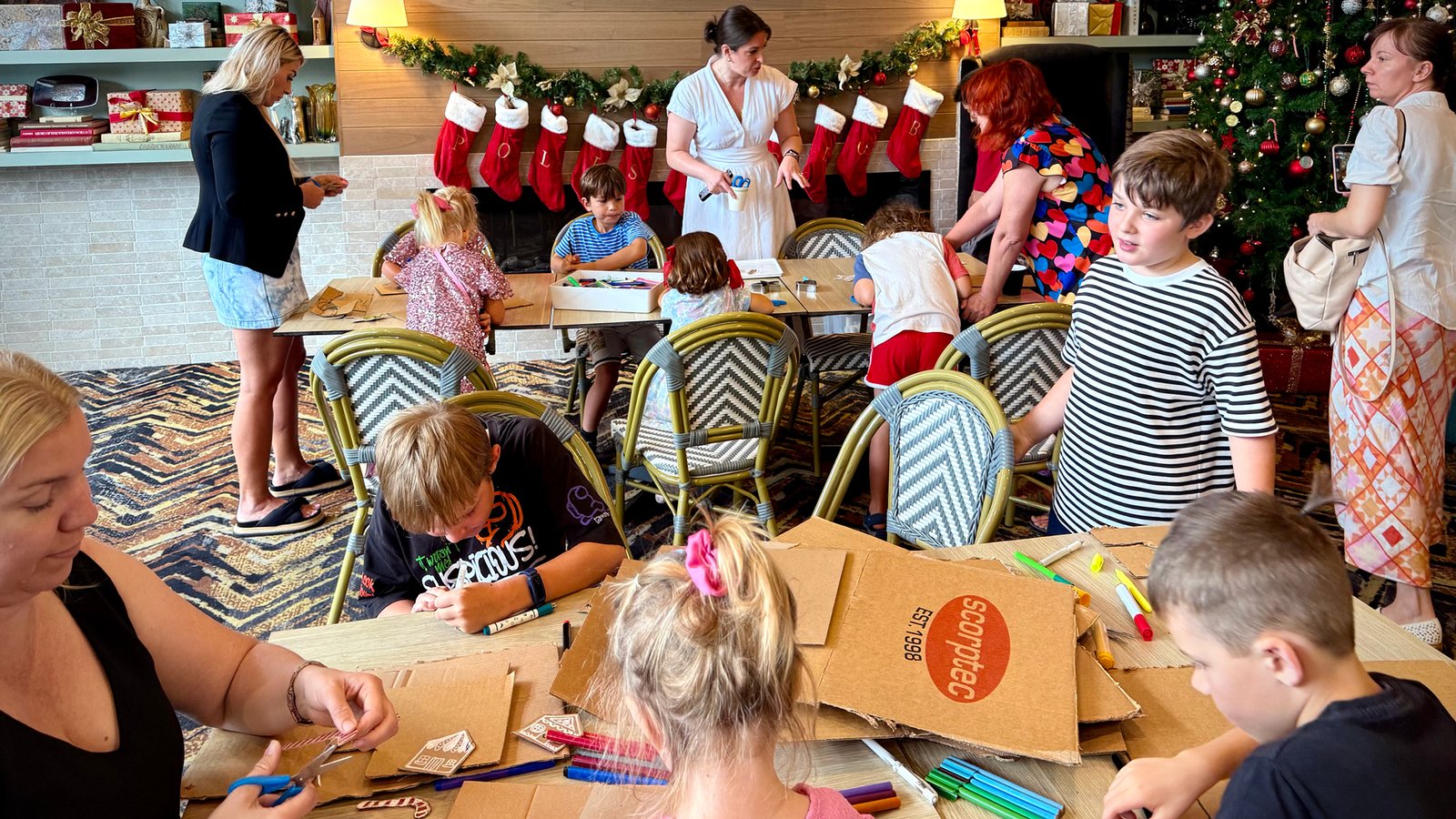 All children were presented with an array of coloured card and shapes, glue, and scissors. They had the opportunity to compose their own unique design and were able to take home their creation.